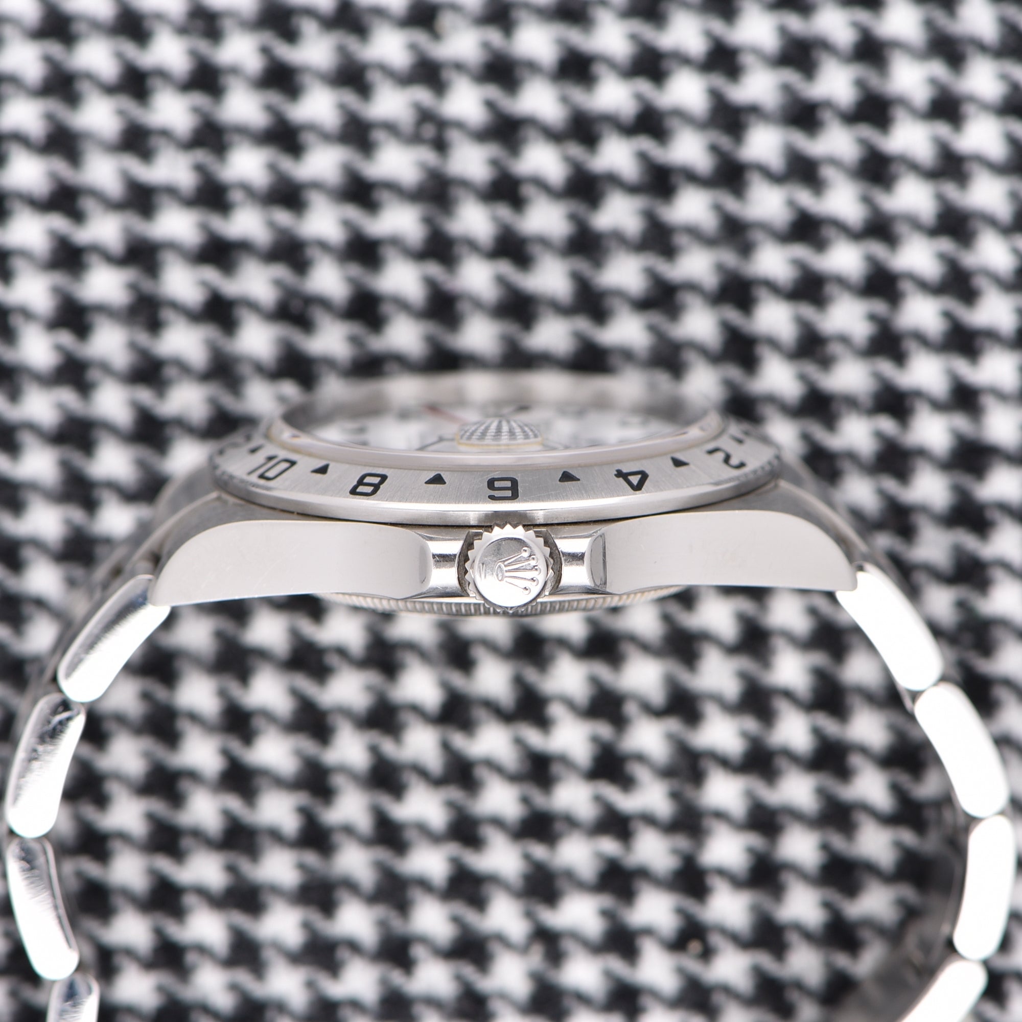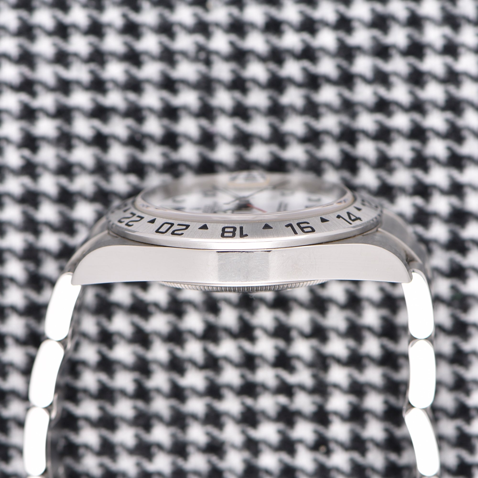 In 1971, Rolex introduced the Explorer II as a larger sibling to the original Explorer I wristwatch. The first reference was the Explorer II ref. 1655, featuring a 39mm stainless steel case and matching steel bracelet. These watches were designed for spelunkers, with key features such as an extra 24-hour hand that points to a fixed bezel with 24-hour markings. The watch was not a dual-time timepiece, but later changed to become a dual-time timepiece.