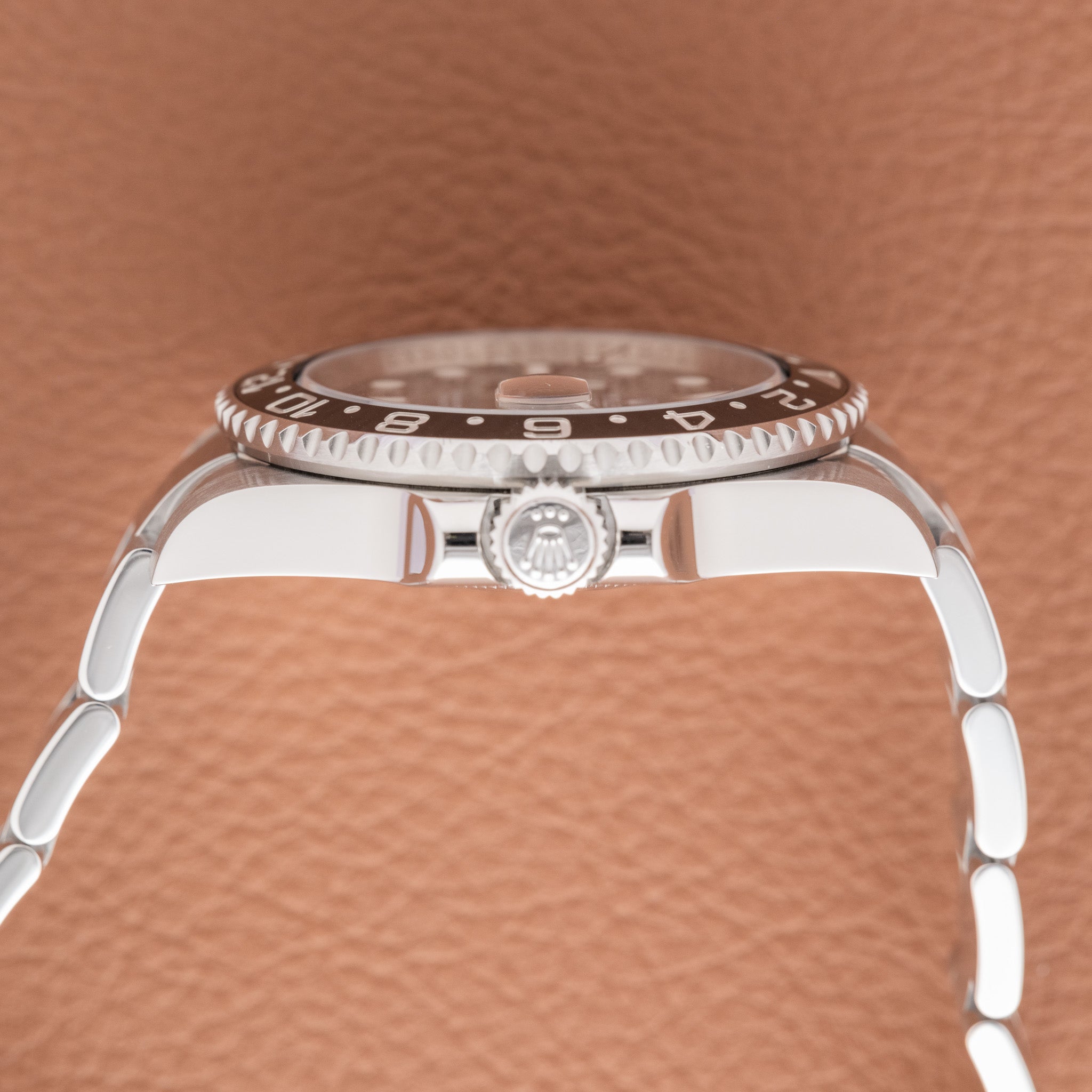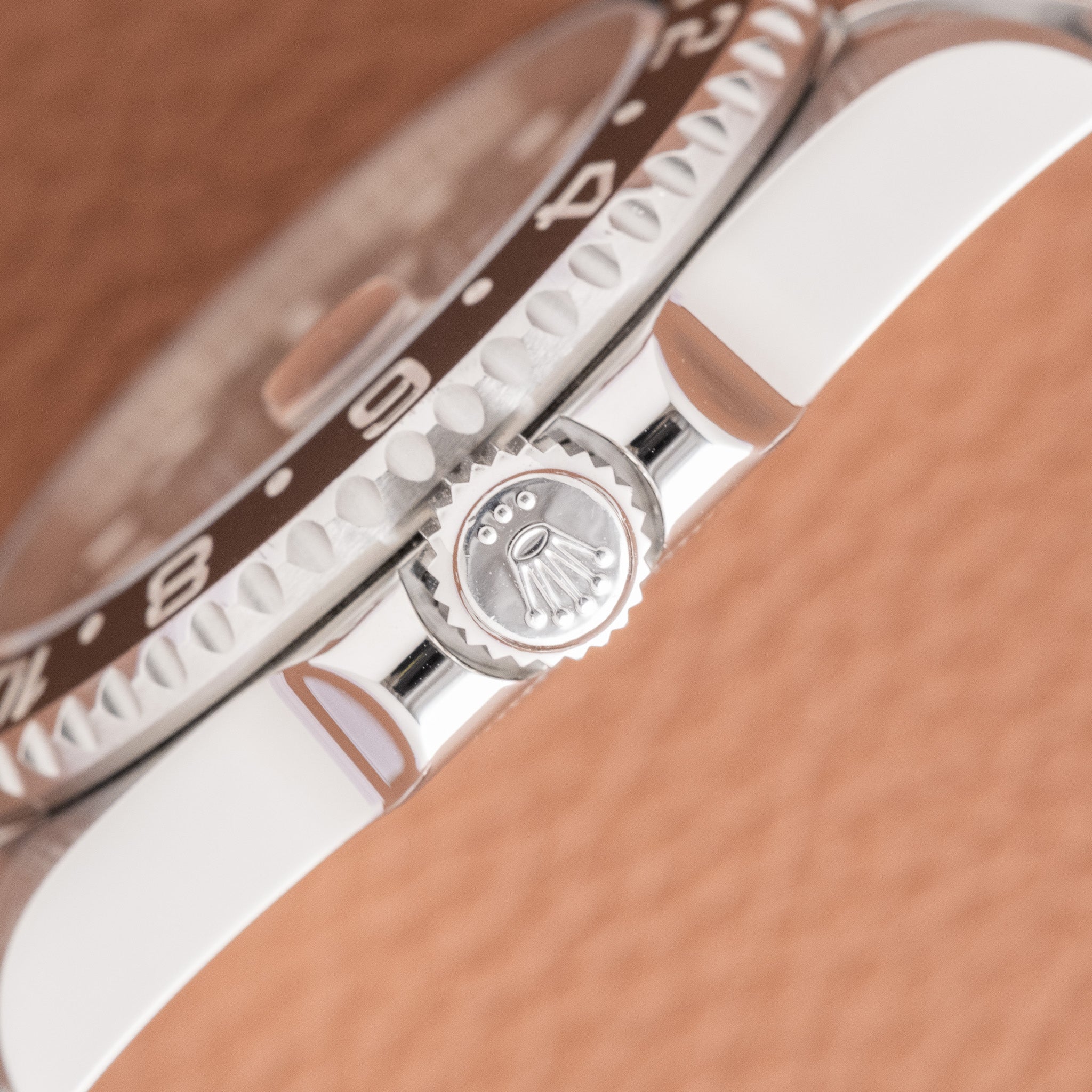 Bezel: The ceramic bezel is clean with crisp numerals. No chips, cracks, or edge damage visible.