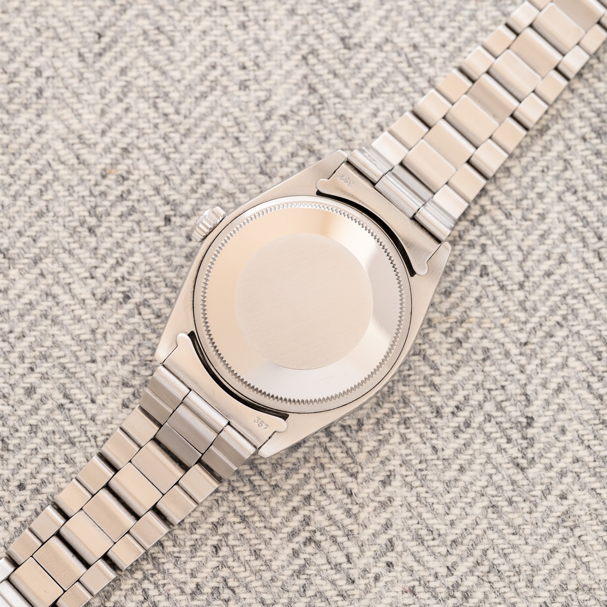 Like other vintage Rolex watches, the reference 1500 Date is fitted with an acrylic crystal with Cyclops magnification, which magnifies the calendar display by 2.5 times for facilitated viewing. Sapphire is more scratch-resistant than acrylic, but acrylic can be easily polished if minor scratches or scuffs occur during regular wear and use. The classic configuration for the reference 1500 Date is with a smooth bezel, regardless of metal type. The most commonly found configuration is an entirely stainless steel model with a smooth bezel, but two-tone and solid gold versions are also available with matching gold bezels. Some older Rolex models have their bezels or bracelets swapped for different styles at the point of sale.