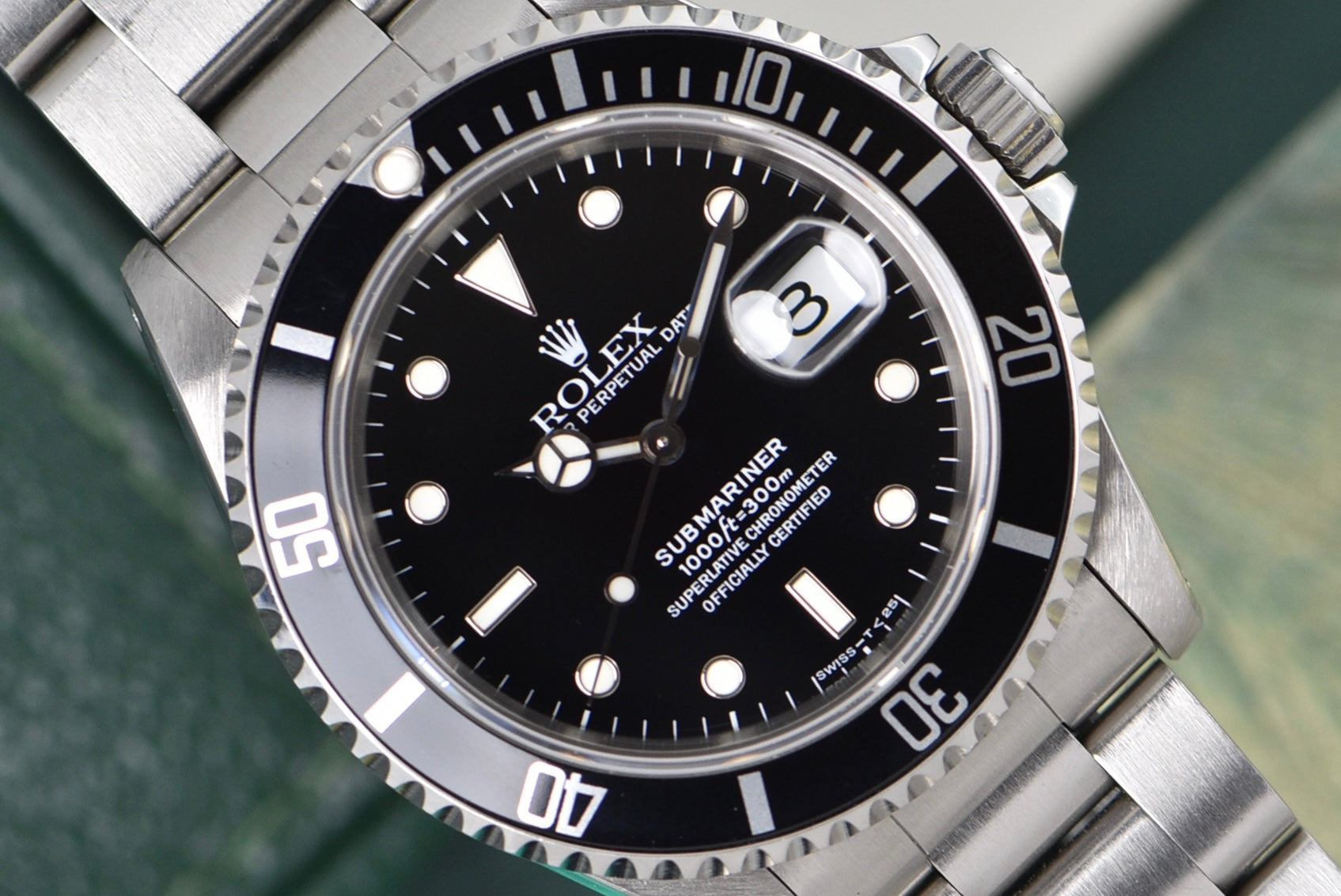 A Go-to for many who want to add a Rolex to the collection or who are looking for a daily wearer. The 16610 features the date at 3 and an aluminum bezel insert. With a perfect case size, you can understand why the Submariner has gained a cult-like following.