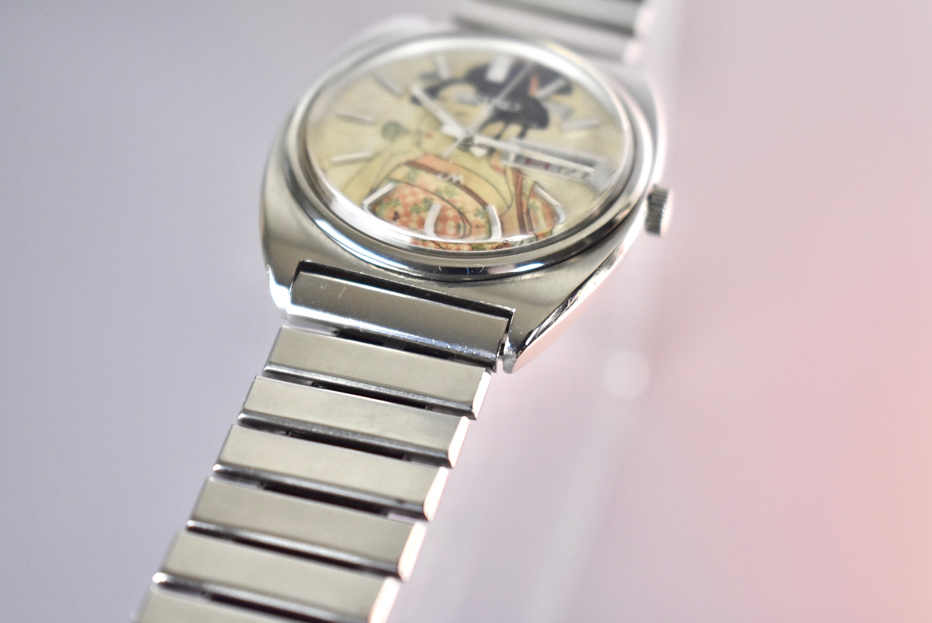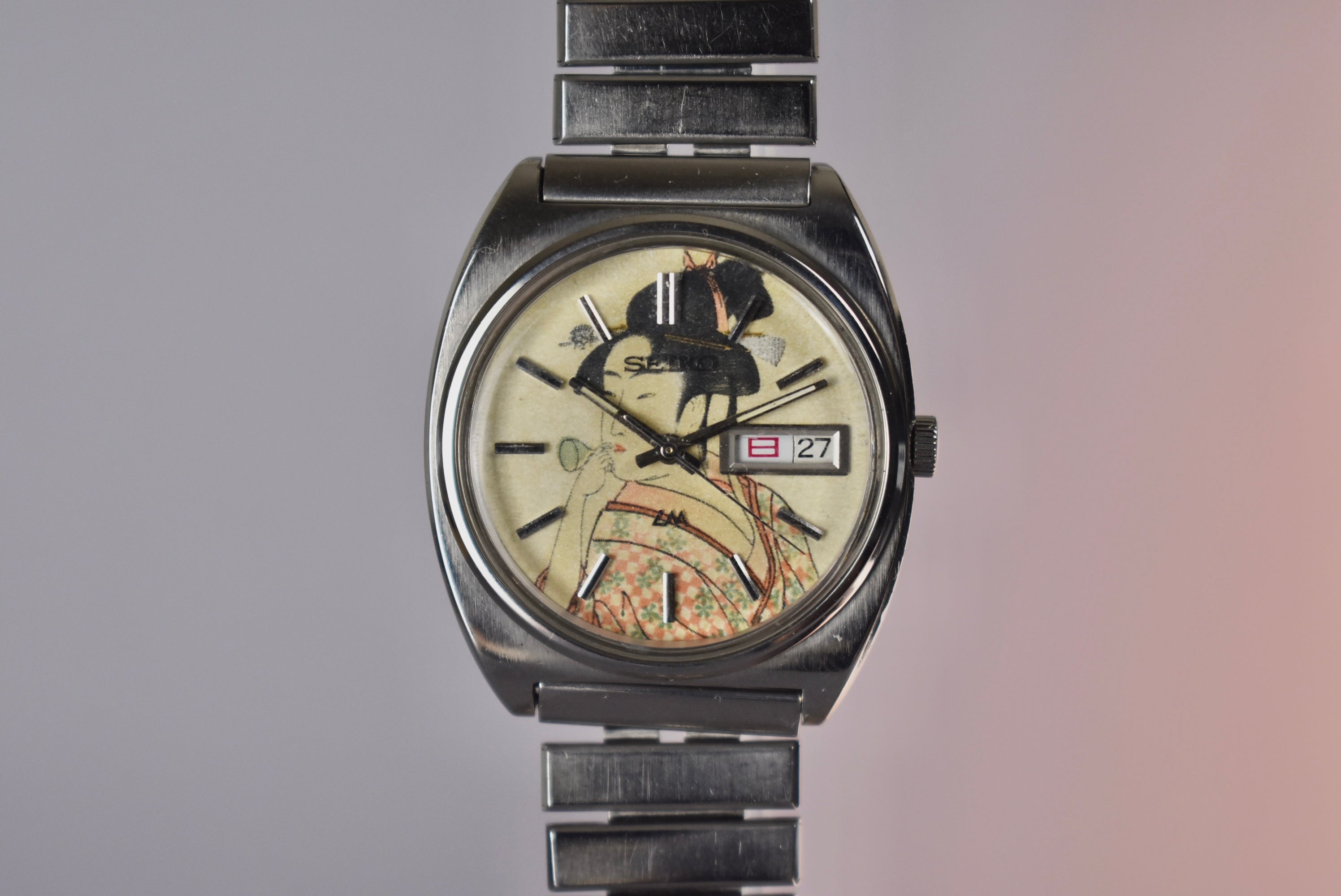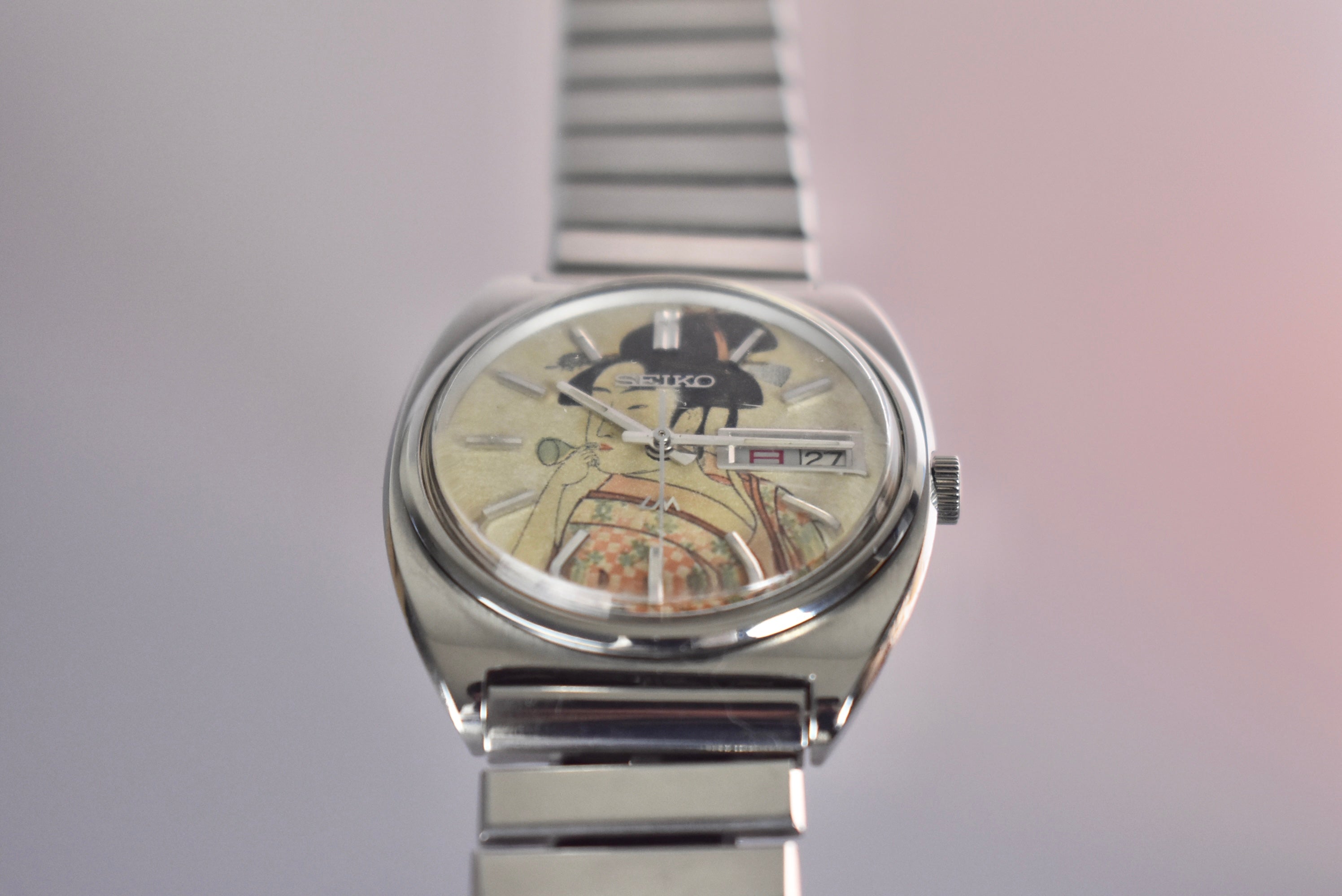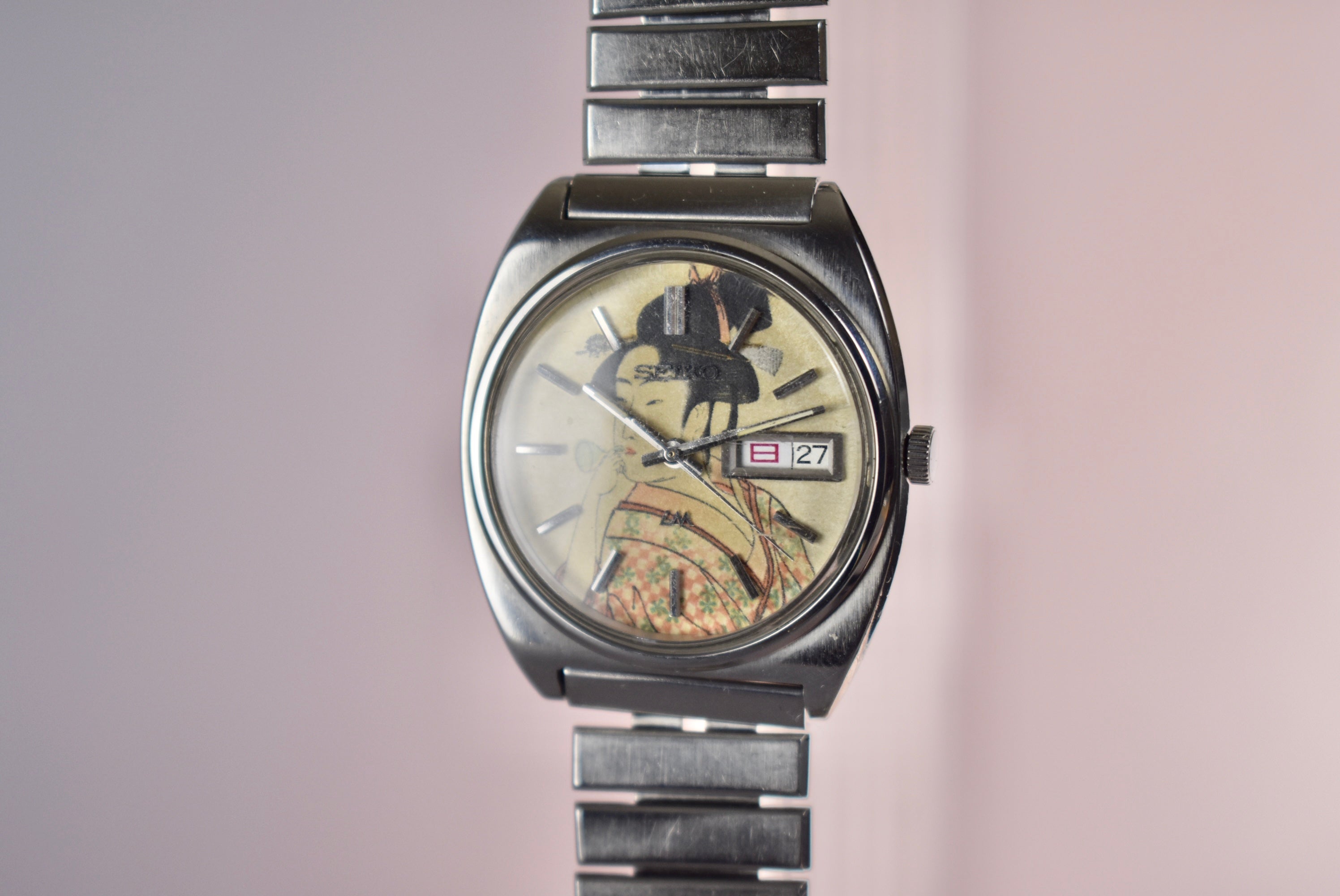 A Watch you probably didn’t know existed and with a rare dial on top of that. The Seiko Lord Matic line features great and affordable vintage pieces with a lot of variety. This piece is just a bit more special, each configuration of the Ukiyo dials features art work from a famous Ukiyo-e artist. This dial feature the art work “Smoking Lady.”