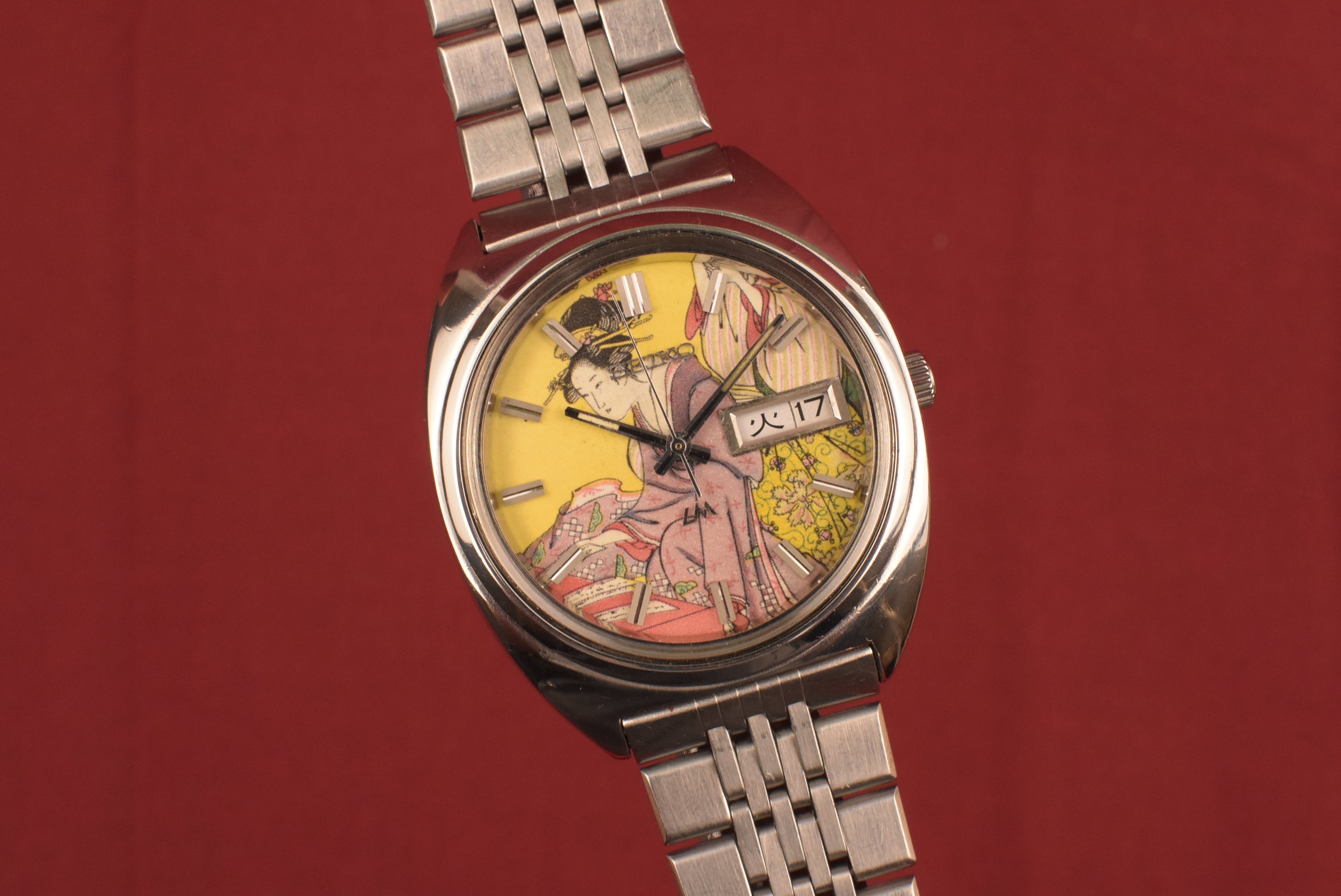 A Watch you probably didn’t know existed and with a rare dial on top of that. The Seiko Lord Matic line features great and affordable vintage pieces with a lot of variety. This piece is just a bit more special, each configuration of the Ukiyo dials features art work from a famous Ukiyo-e artist. This dial feature the art work “Playing Cards.”