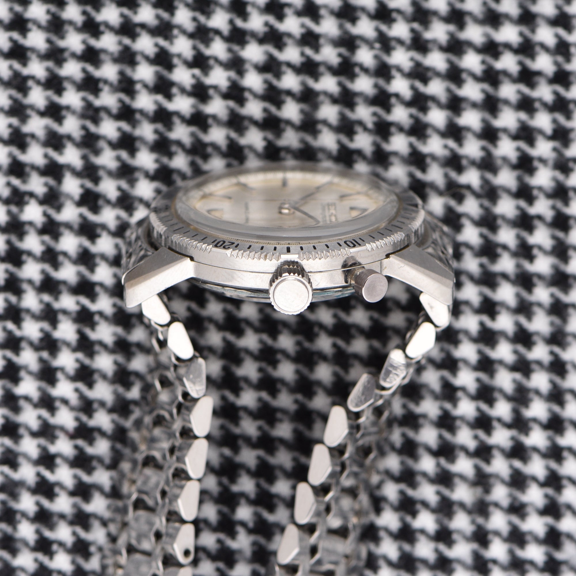 The case is unpolished with the case back sticker still partially there. The manual movement was recently serviced. The watch comes on the original bracelet which is unsigned which was normal for this reference.