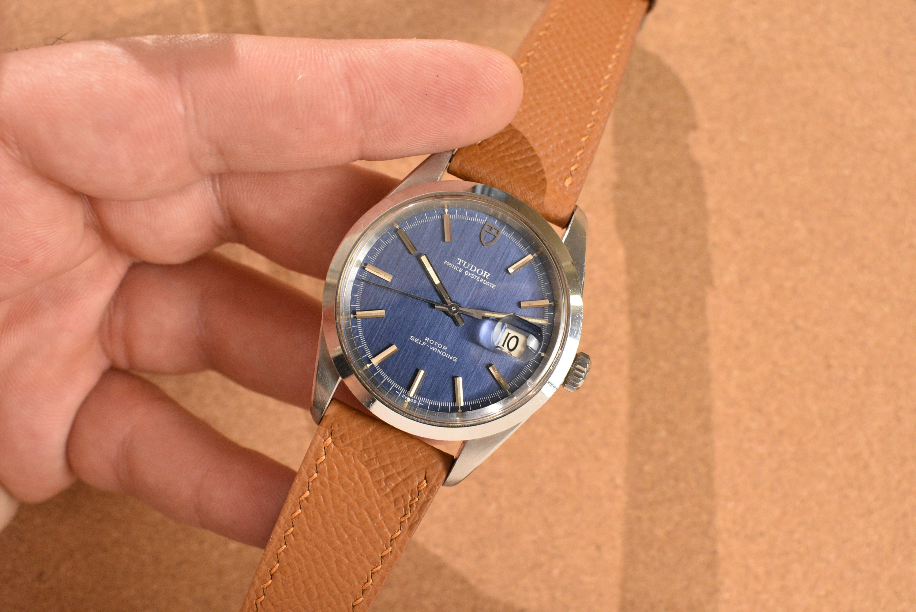 Tudor has always been the brand that experimented with Rolex designs. Where else could you get a vintage oyster case in 38mm? The jumbo Oysterdate is super rare when it comes to vintage Tudor. Modern specs on a vintage watch from the '70s, what more could you ask for? This is a super unique find and a reminder of all the crazy watches out there for us to explore and discover. If you are looking for a mint Jumbo, here it is. The best part is, take a look at that killer brushed blue dial. The condition on this one is insane!
