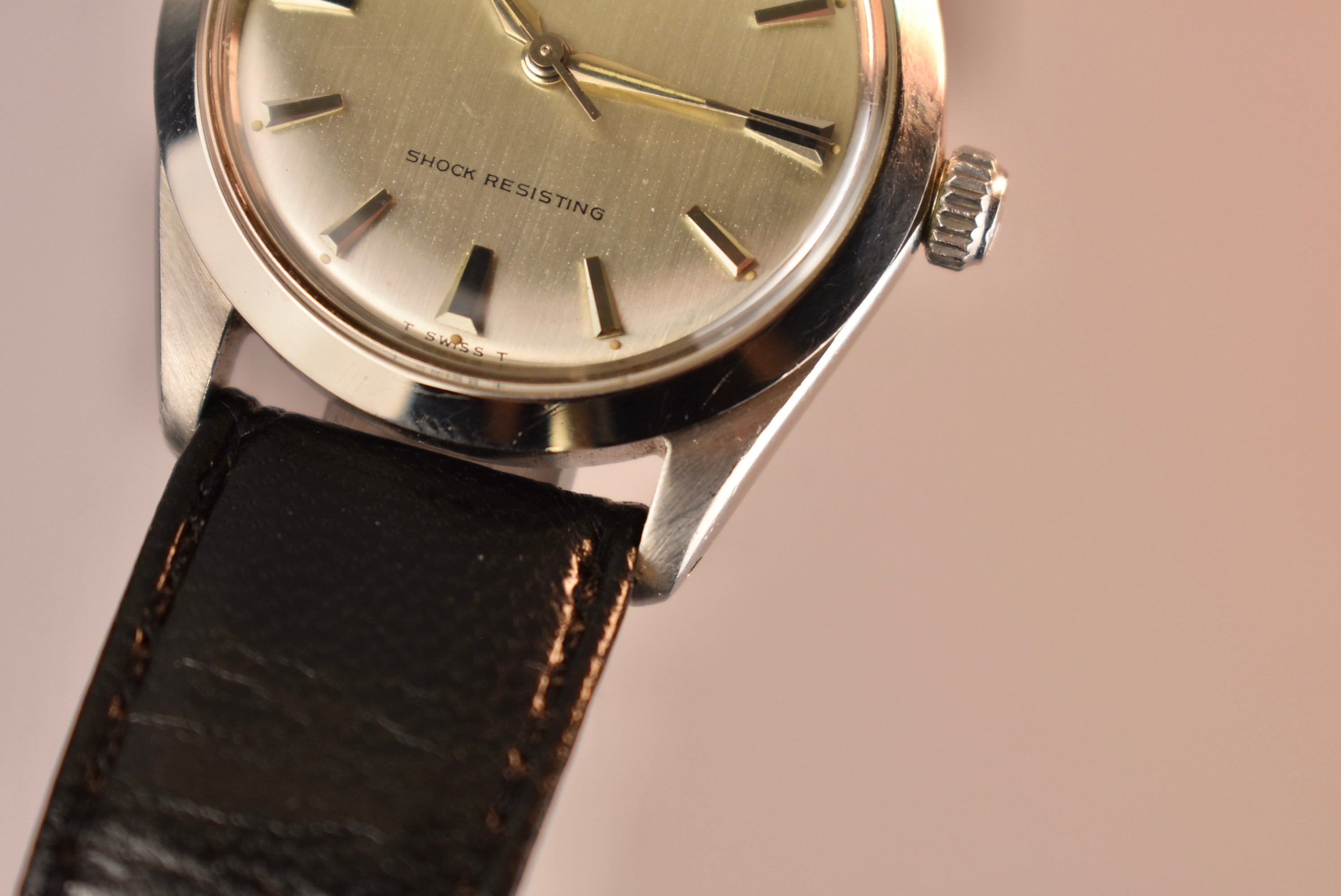 Vintage Tudor and Omega are the two best vintage watches on the market for under $3000, especially Tudor. With its big brother, Rolex, Tudor has beautiful vintage watches with original Rolex parts. This Oyster reference 7984 has a gorgeous brushed dial, paired with those hour markers and dauphine hands, you can't go wrong with it. The case and crown are also stamped with the Rolex Crown.