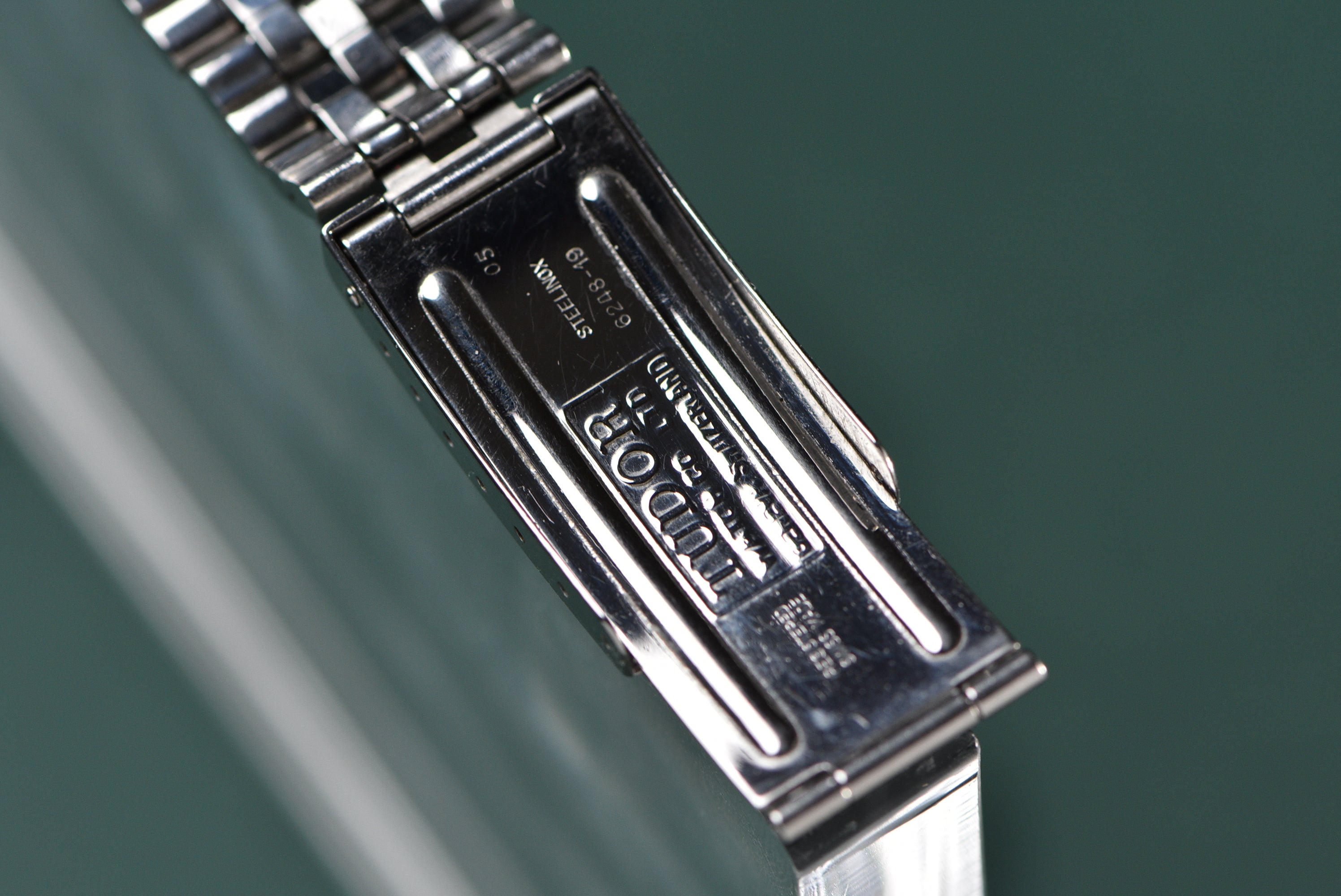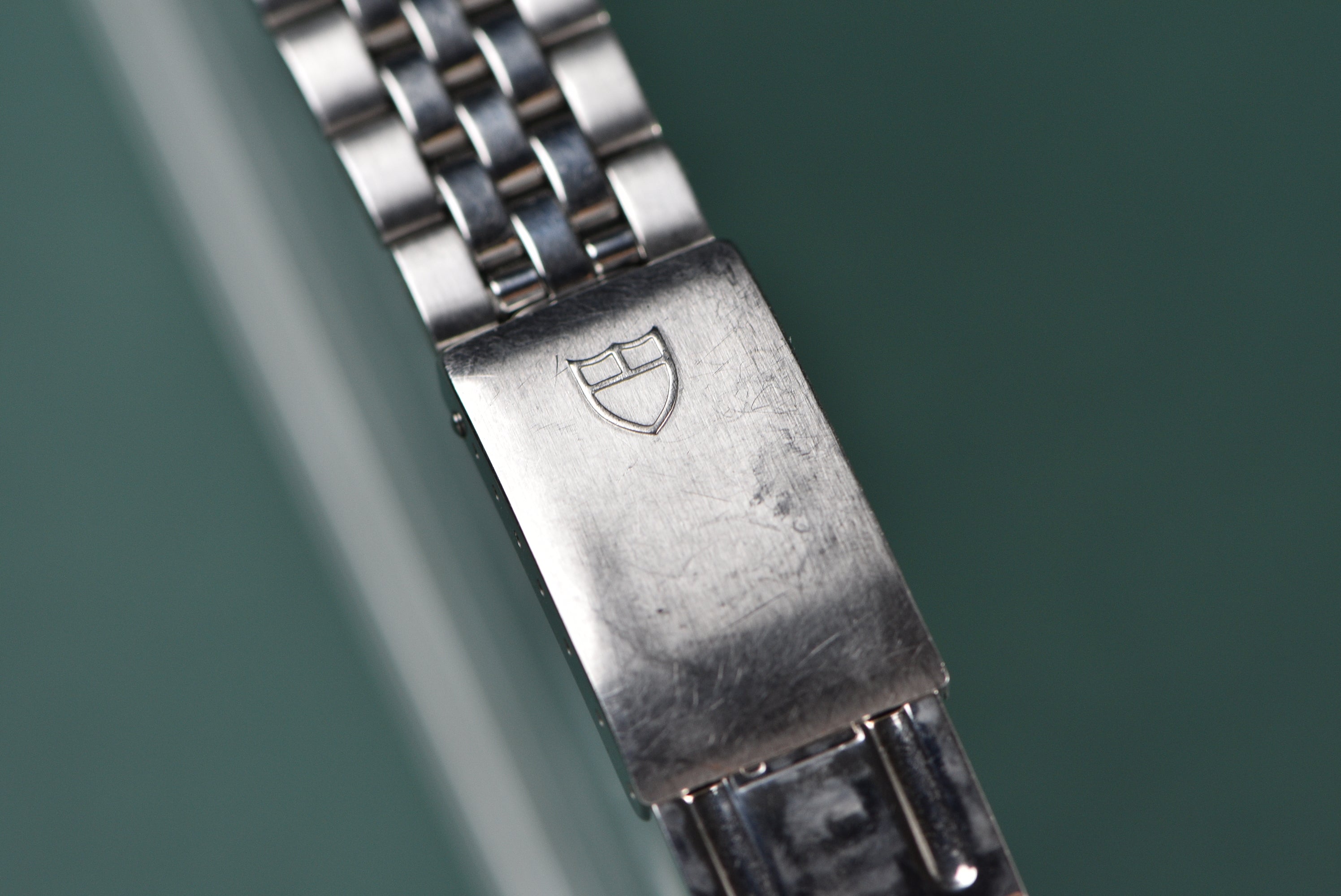 The case and bracelet on this Tudor are unpolished. The lugs are still sharp and thick while the white gold fluted bezel has gained a bit of patina. The dial itself is in amazing condition and all of the lume is still intact. The watch features its original Rolex case and Rolex Buckle in great condition.