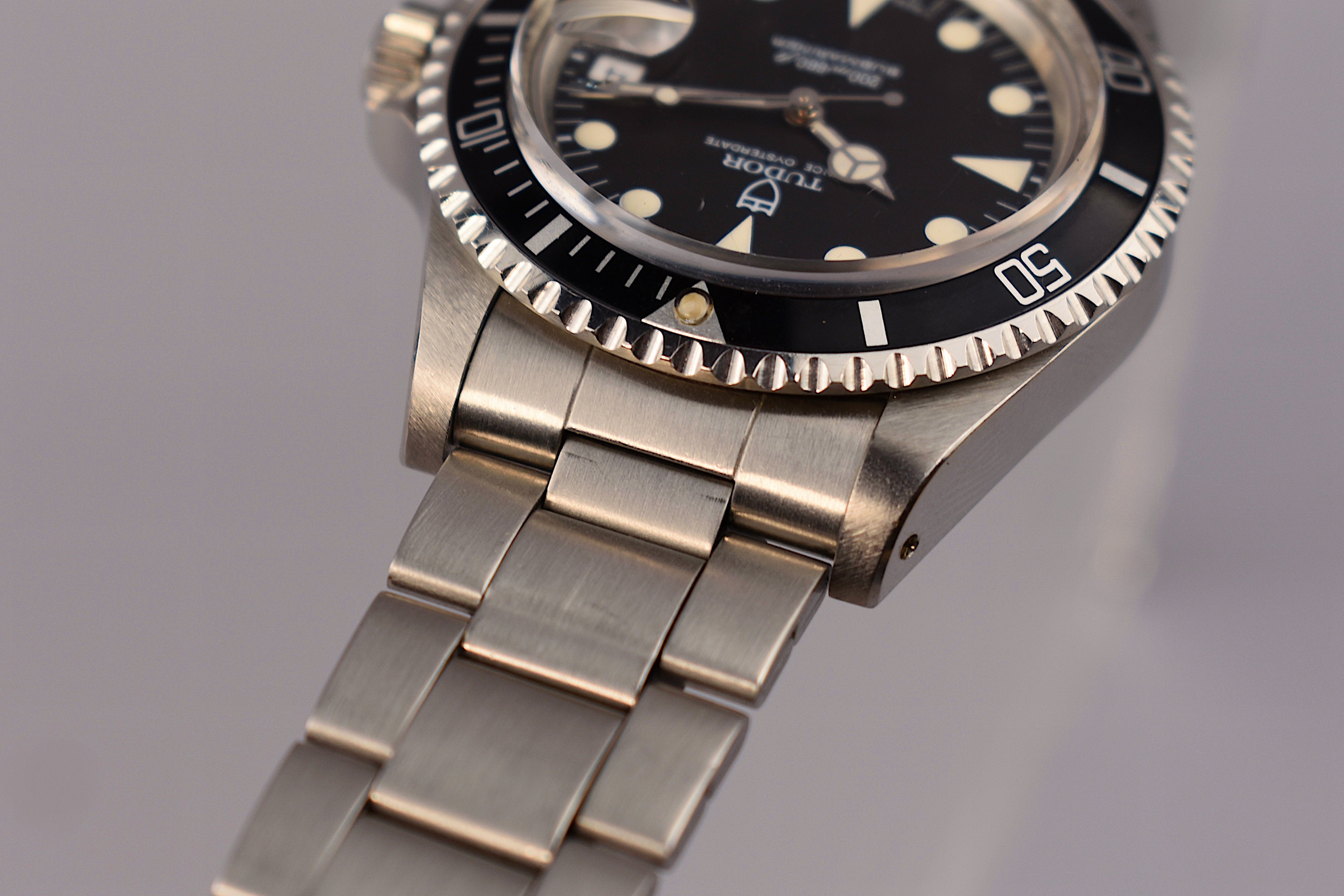 A watch that has skyrocketed in price over the past couple of years and it totally makes sense why. A beautiful vintage submariner from the one and only Tudor Company. The sister brand of Rolex and the clues left behind being the Rolex manufactured crown and case. With that being said, this example features an unpolished case and a divers extension.