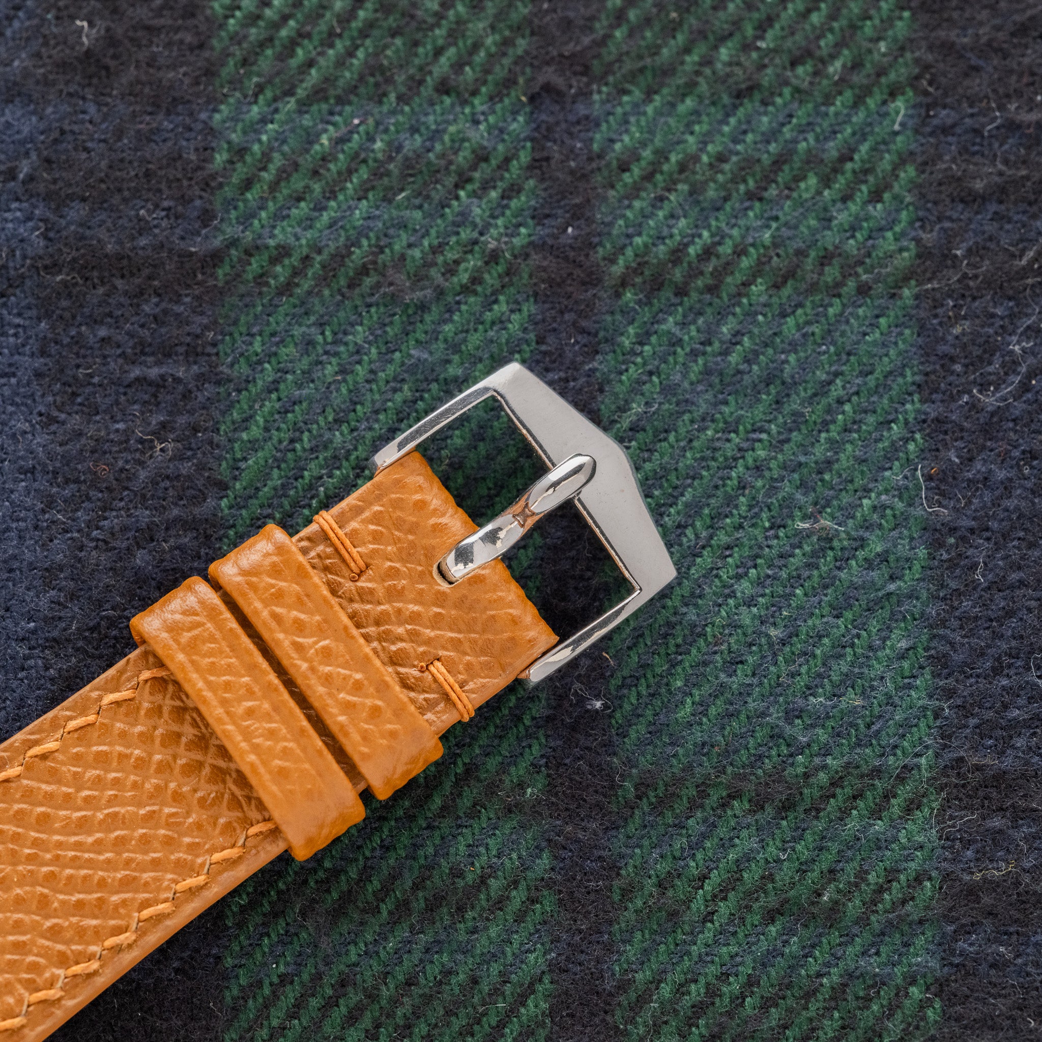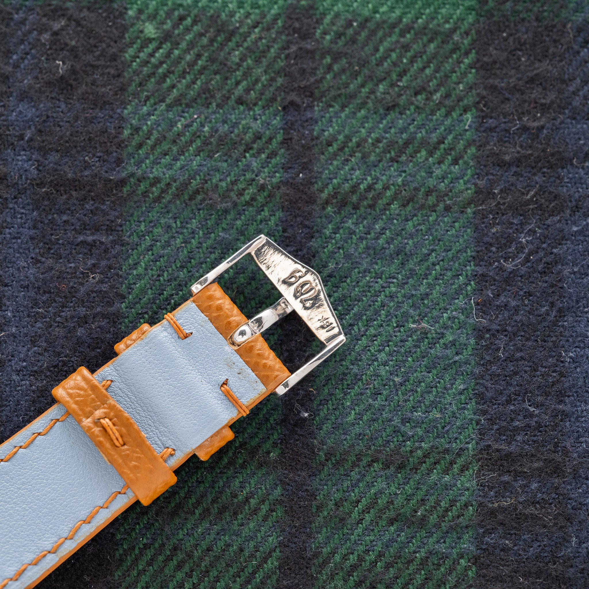 Strap & Buckle: The original buckle on our handmade navy alligator strap.