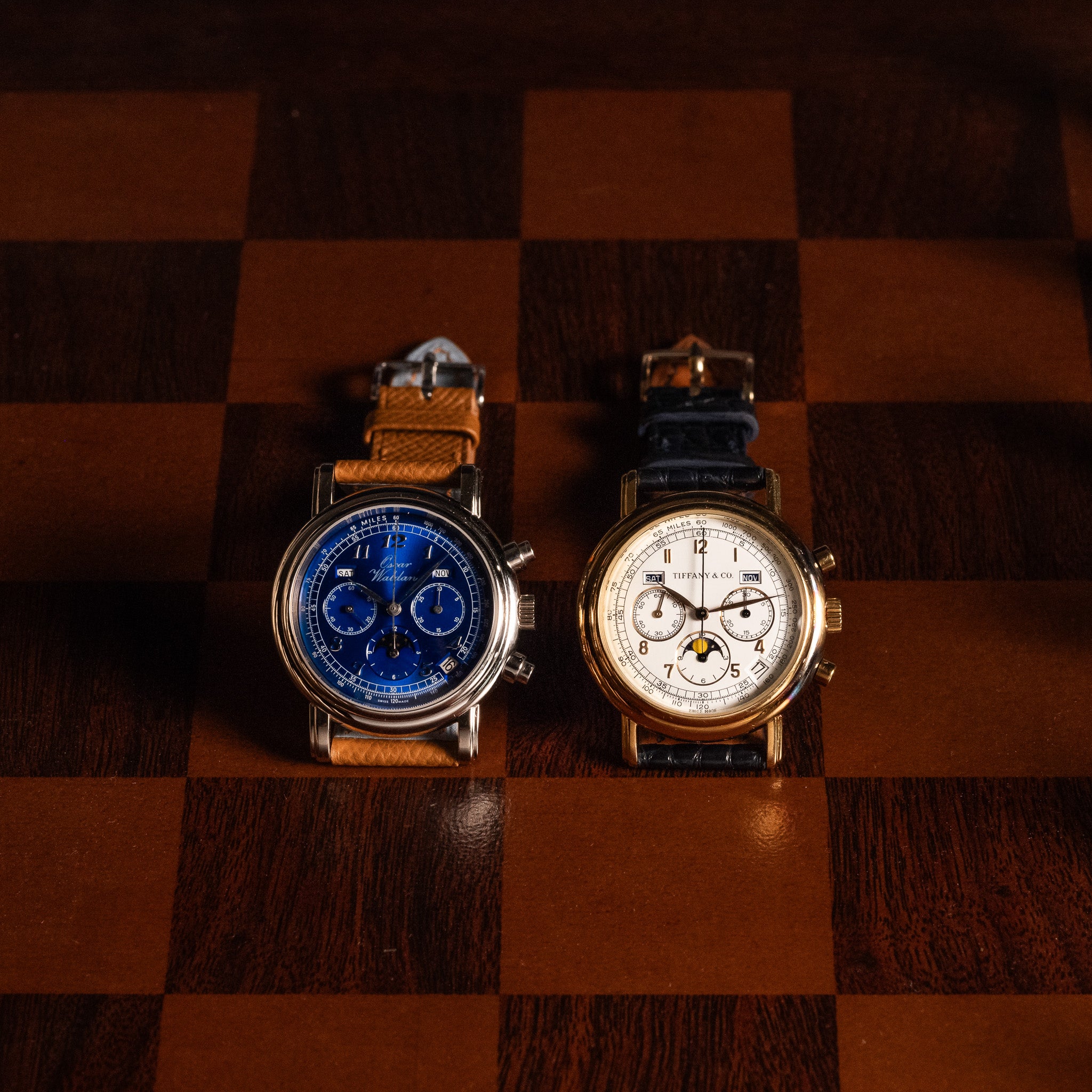During the Quartz Crisis of the 1970s, which caused a steep decline in mechanical watch production, Oscar saw an opportunity. He began acquiring surplus high-grade Swiss movements—particularly Valjoux and El Primero chronograph calibers—with the intention of preserving traditional horology. In 1979, he established Waldan International in New York, producing limited-edition wristwatches that featured these storied movements encased in precious metals, with custom dials and classic designs. These timepieces were often co-branded or retailed through high-end outlets like Tourneau, Tiffany & Co., and Neiman Marcus, and became known for their low production volumes, quality control, and mechanical integrity.